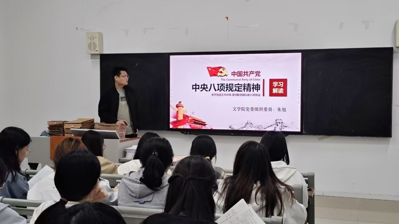 为深入贯彻中央八项规定精神,进一步加强全院作风建设和纪律教育,4月22日,公司党委组织委员朱旭在德艺楼7102室为全院各班员工干部69名同学讲授了题为“中央八项规定精神学习解读”的专题党课。