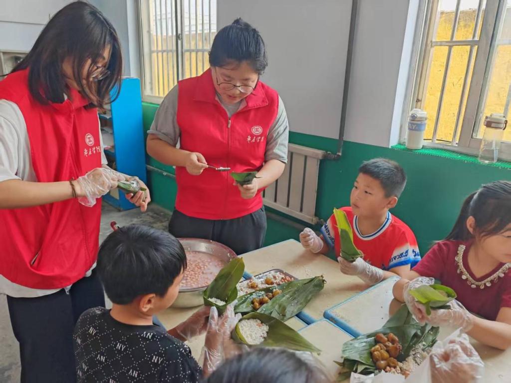 为传承端午传统文化,让同学们感受传统节日魅力,同时增强团队凝聚力,培养志愿者服务精神。5月30日,太阳成集团tyc33455ccwww志愿队走进盐湖小学开展包粽子主题活动,为校园注入了浓厚的端午温情,盐湖小学书记孙晋玲亲临现场,与师生们共同感受传统文化的魅力。