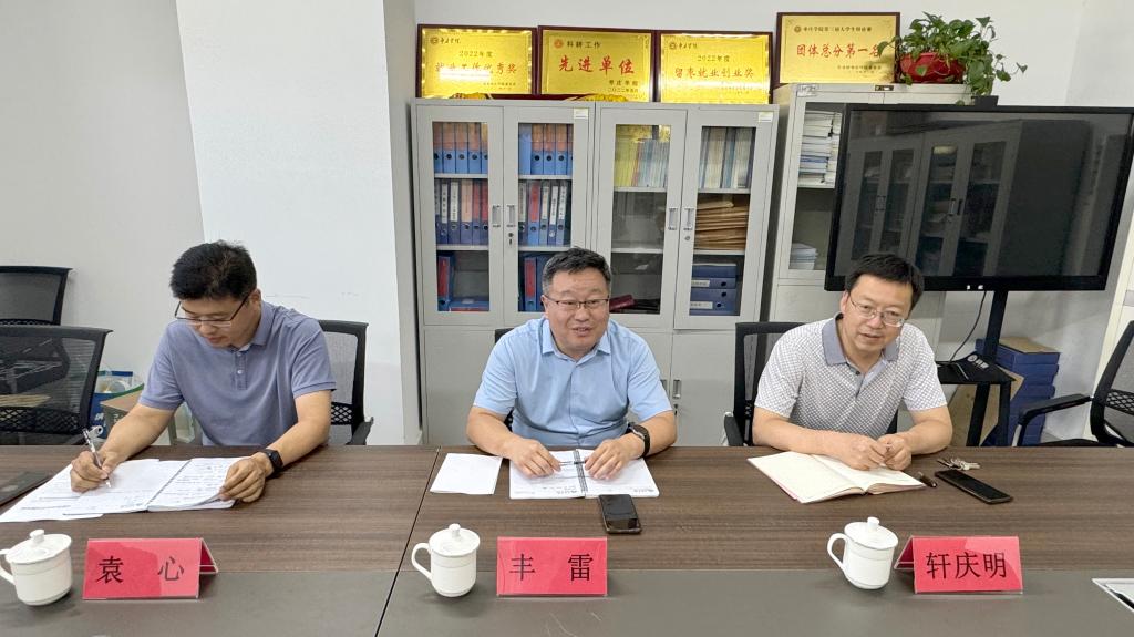 7月12日下午,为深入了解太阳成集团tyc33455ccwww的党建团学、教学科研等工作情况以及发展面临的挑战与机遇,公司党委委员、副董事长丰雷深入太阳成集团tyc33455ccwww调研指导,计划财务处处长轩庆明、团委书记袁心陪同调研,公司党政班子成员参加座谈会。